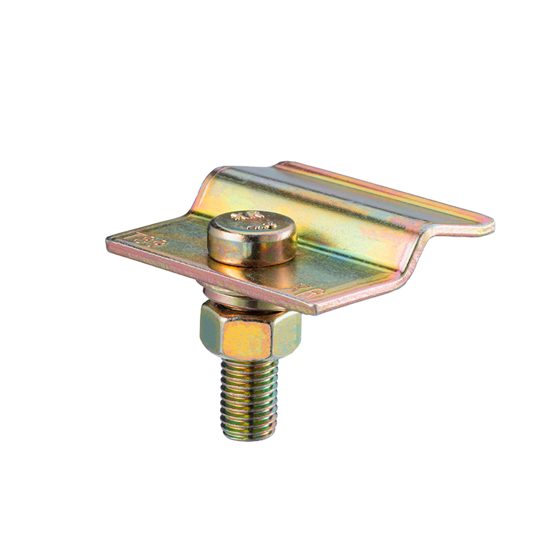 产品规格产品特点及应用特征 • 采用冲压取代热锻压铸工艺 , 产能效率大幅提升 , 耗能和成本降低 , 质量稳定可靠; • 独特的工艺设计 , 防止折弯裂纹和应力集中产生; • 方孔设计配合对应的方颈螺栓 , 安装快速方便; • 符合 GB7588-2020 标准下摩擦力的要求应用 • 固定电梯轿厢在导轨上行驶, 防止轿厢晃动或者脱轨技术数据材质、涂层电镀锌孔设置方孔/六角头螺栓认证/测试报告通过摩擦/夹紧力测试质量检验通过产品原产地浙江湖州产品性能测试 1. 摩擦力测试 2. 导轨夹持力